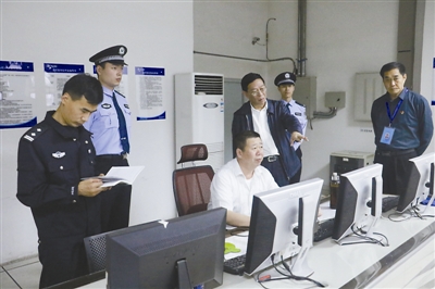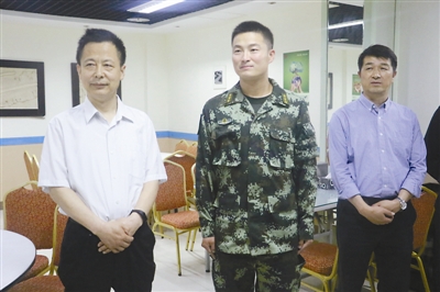 王建民巡视员(左一)走访在职工之家宾馆执行任务的武警