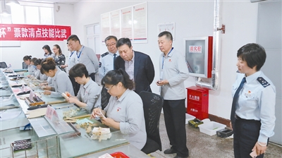 梁海泉副主席(后排右三)观摩基层单位劳动竞赛中的点钞比赛