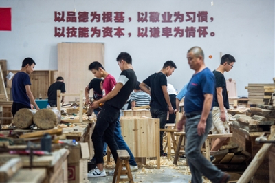 “匠士”这一并非国家承认的学位,在授予的13年间虽遭受过质疑,但在实践过程中却越来越得到用工企业的认可。在车间一角,整齐摆放的各式家具集中展示着木工班的标准手艺。“我们与多家企业建立了合作关系,木工专业毕业的学生供不应求,有些外地企业上门来要,我们都不给,只能建议他们派学生过来学习。”徐雪峰说,“由于木工专业就业前景好,近年来,每年木工班的学生就有一半来自外省。”