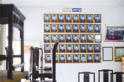 这间由餐厅改成的库房摆满了师生们的木工作品。四周墙上也挂满了每一个毕业生身穿“匠士服”的照片。