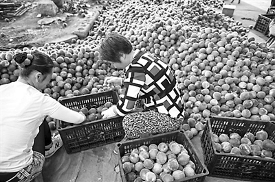 眼下正值果品销售旺季,山东省枣庄市山亭区乡间活跃着万余名“销果帮工”,帮助挑选、分装和搬运果品,即解决了经销商、果业大户人手不足的难题,又在家门口实现了就业增收。刘明祥 摄/东方IC