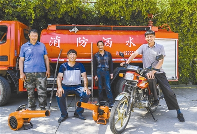 塔城市南湖次生林场的部分护林员的合影。右起分别为:赵学兵、邓克全、赛力克·阿克帕尔、加尔恨别克·胡提江(6月11日摄)。