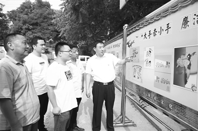 6月13日,河北省内丘县纪检监察干部为五郭店乡的村干部讲解廉政宣传展板内容。
