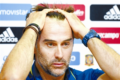 6月13日,西班牙足协宣布,解雇刚刚被宣布与皇马签约三个赛季的主帅洛佩特吉。前皇马名宿费尔南多·耶罗将出任西班牙国家足球队主帅。图为2017年9月1日,洛佩特吉在马德里举行的一场新闻发布会上。 新华社/法新