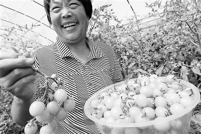 近年来,河南省鄢陵县通过“合作社+土地托管+贫困户”的产业扶贫模式,大力发展蔬菜水果产业,并依托农民专业合作社发展观光旅游,延长产业链,成为农民增收、农业增效、农村发展的新亮点。图为6月14日,农民在鄢陵县农民专业合作社的大棚内采摘黄色圣女果。