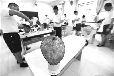 6月20日,杭州,正在练习美容美发的戒毒人员。杭州市强制隔离戒毒所汇聚了各行业专家学者等一批公益使者,开展免费职业技能培训,增强戒毒学员职业技能和就业能力。