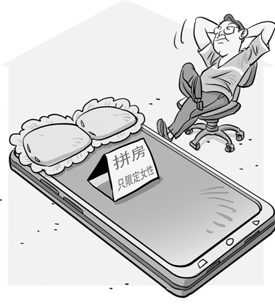拼房?乍一看,貌似是对闲散资源的整合利用,挺好。但再一看相关“约拼”信息,就懂了——“我出床,你出人,只限美女。”赤裸露骨的文字背后是藏污纳垢。显然,这类拼房小程序已然沦为色情温床。当前,共享经济的概念越来越融入传统行业,若能借力互联网的翅膀让行业转型升级,获得新的生机,当然是好事,但前提是守法。眼下,拼房小程序不仅成为某些人招嫖的渠道,还绕过酒店住宿业信息登记制度,这都暗藏诸多风险。互联网创新当然值得鼓励,但以违法、践踏道德底线为代价来赚快钱的“创新”还是打住。 赵春青/图 嘉湖/文
