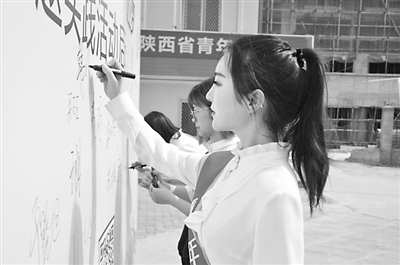 6月15日,中铁置业西安公司团委和中铁北京局团委联合举行青年突击队授旗和争创全国安全生产示范岗、陕西省青年文明号承诺签字仪式,为项目开发和工程建设搭建争先创优的平台,激励团员青年建功立业。 彭华 摄