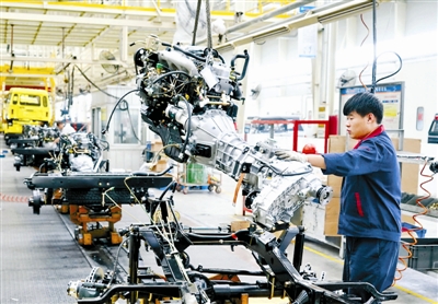 6月24日,工人在北汽集团黄骅汽车产业基地生产车间工作。
