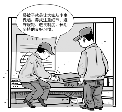 “我听老职工说,外面调来的职工,只要在这待上一个月,从内务到个人形象、工作态度、业务素质都会焕然一新。”青工陈超超说,“我们不仅仅是在叠被子,还是在养成一种良好的习惯,让自己从中获得成长。”