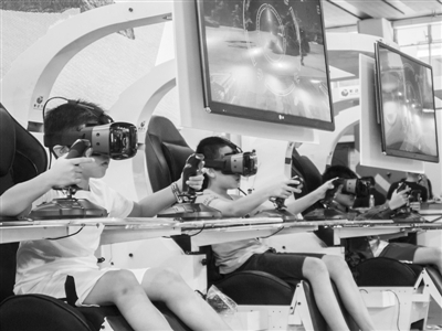 在今年4月举行的广州游戏博览会现场,孩子们利用VR工具玩电子游戏。 东方IC供图