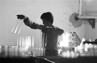 近年来,山东省沂源县在玻璃制品、铸造等高能源消耗企业中,大力推行实施以气代煤、电代煤等清洁能源生产,不仅使企业实现了新旧动能转化,促进了清洁生产,更便于加热生产的温度控制,助推生产工艺和产品质量的提高。图为6月25日,山东沂源县悦庄工业园一玻璃制品企业,一名工人在气代煤加热生产线上劳作。视觉中国 供图