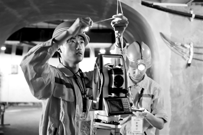 6月27日,参赛选手在比赛中进行井下15秒级导线测量。