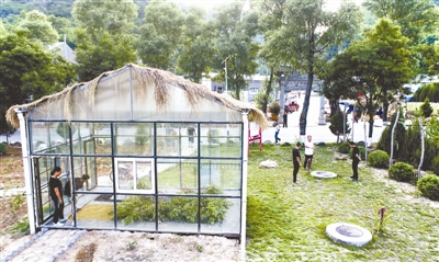 图为6月26日无人机拍摄的陕西延安宝塔区甘谷驿镇罗家湾村污水处理站。该村引进先进工艺,建成日处理量30立方米污水处理站,实现了全村生活污水无害处理。