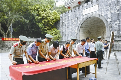 缉毒官兵与群众开展“不让毒品进我家”联合签字活动。