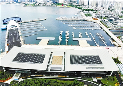 当日,上合青岛峰会主会场——青岛奥帆中心,经过短暂的会后内部服务功能规划调整正式对外开放。 新华社记者 李紫恒 摄