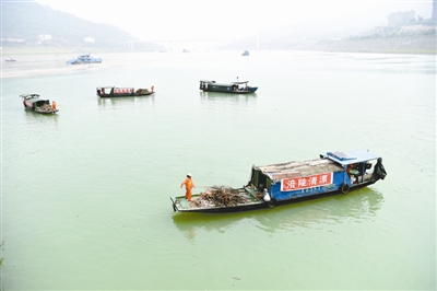7月1日,志愿者在乌江、长江交汇口进行清漂截污作业。