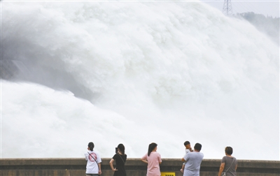 7月3日,游客在黄河小浪底水库参观。