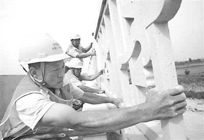 我国最长的明挖高铁隧道——京张高铁东花园隧道,是由中铁十八局四公司承建的北京冬奥会重点配套工程,位于河北张家口市怀来县东花园镇,全长4970米,最大埋深约8.1米。该隧道紧邻官厅水库、康西草原、野鸭湖国家湿地公园等环境敏感地区,隧道大开挖、深基坑,施工技术难度大,地下水丰富,环保、水保标准高。为打造绿色冬奥会工程,建设者攻克诸多技术难关,使工程得以顺利进行。图为施工人员在隧道口安装带有冬奥会比赛项目标识的防护栏杆。伍振摄