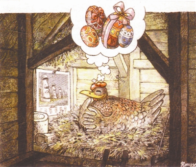 母鸡正在酝酿生产,决心生下不一样的蛋,譬如彩蛋、工艺礼品蛋……唉,不现实的想法愈多,失望的落差愈大。