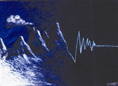 坊间虽流行“玩的就是心跳”的旅游时髦词,但人们多是见到“驴友”在激情中罹祸。此画借喻心电图变化告诫“玩”亦应有度