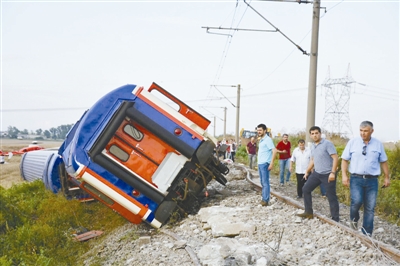 这是7月8日在土耳其泰基尔达省拍摄的火车出轨事故现场。
