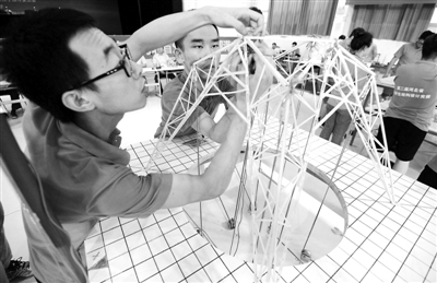 当日,第二届河北省大学生结构设计竞赛暨第十二届全国大学生结构设计竞赛河北省分区赛在河北工程大学举行,来自全省25所设有土木工程专业高校的26支队伍参赛。郝群英 摄(新华社发)