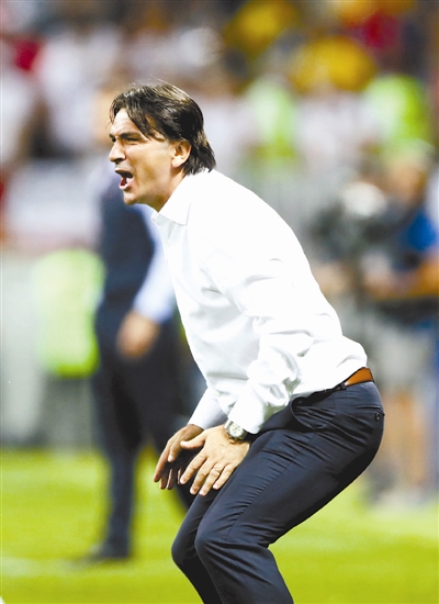 克罗地亚队主教练达利奇在场边指挥。新华社记者 曹灿 摄