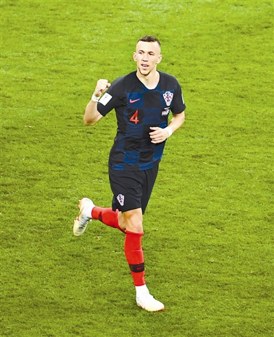克罗地亚队球员佩里西奇在比赛中庆祝进球。 新华社记者 王毓国 摄