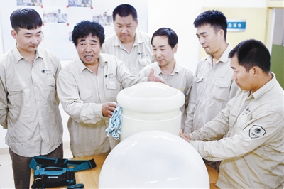 7月11日,“水爷”孟庆水(左一)在给华灯班的队员们培训。每次有新队员来,孟庆水都会结合自己的工作经验给大家讲述清洗检修华灯的正确步骤和技巧,以此保证华灯班的队员能够协同配合,高效完成作业。