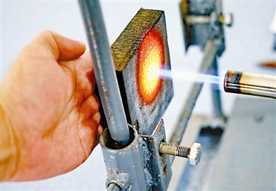 7月15日,技术员通过实验展示石墨烯“三防”涂层技术的耐高温特点。