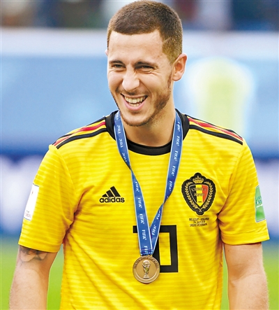 阿扎尔带领比利时队获得俄罗斯世界杯季军。