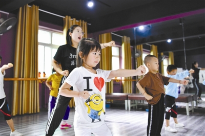 在山西省晋城市维古文化艺术有限公司,都佳佳带着孩子们练习舞蹈。都佳佳完成了从古书院矿文工团职工向舞蹈老师的角色转变。建于1958年的古书院矿,是山西晋城无烟煤矿业集团公司的首座矿井,2017年11月正式关闭退出。2018年3月,古书院矿两家公司合作,以“煤炭+文化+旅游”为特色,打造文化旅游项目。“花甲之年”的老矿将迎来新生。新华社记者 詹彦 摄