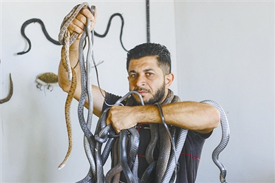 据外媒近日报道,在加沙地带,巴勒斯坦男子法塔赫在家中养蛇已经十来年了,他共有15种不同种类的蛇。法塔赫的儿子从小也跟蛇生活在一起,蛇成了他最好的玩具。东方IC供图