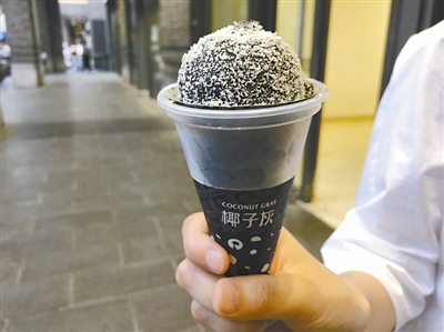 在重庆解放碑的一家店里,记者看到海报上这样介绍:这款独特的冰淇淋是用烧焦的椰子壳的灰,然后混合椰子片、椰汁以及奶油做成。其中,椰子粉富含人体所需的十八种氨基酸、钙、锌等营养元素,被称为世界上氨基酸含量最高的天然饮品。