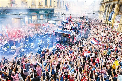 7月16日,克罗地亚队成员乘坐的大巴受到球迷夹道欢迎。当日,克罗地亚队成员抵达首都萨格勒布,受到球迷热烈欢迎。7月15日在莫斯科举行的2018俄罗斯世界杯足球赛决赛中,克罗地亚队以2比4负于法国队,获得亚军。 新华社发(桑德拉·希穆诺维奇摄)