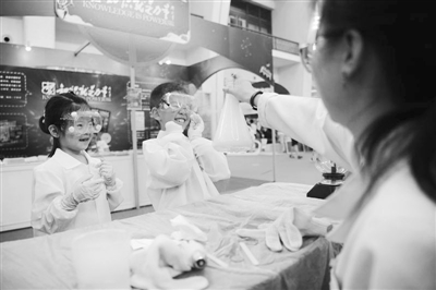 7月18日,第五届城市科学节上,两名小朋友在观察干冰实验时,与科学老师的“魔法瓶”互动,感受干冰液化过程。当日,国内外的百余家参展单位携300余项科学展览、动手科学实验、科学互动游戏、科技体育竞技项目以及30场科学表演秀、50场科普知识讨论一同亮相城市科学节。今年城市科学节的主题是“探索发现”,现场集合了人工智能、电脑编程、科技体育、创意思维、模型制作等众多内容。