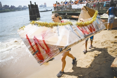 当天,一场别开生面的“赛纸船”活动在纽约举行,选手们在规定时间内现场制作纸船并下水竞速,感受亲水的快乐。