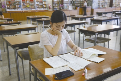 7月17日,在朝鲜平壤人民大学习堂,读者在阅览室学习。 新华社记者 程大雨 摄