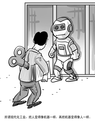 所谓现代化工业:把人变得像机器一样,再把机器变得像人一样。赵春青 画