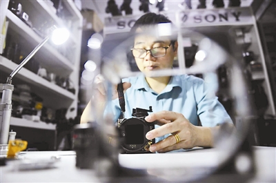 “相机维修并不简单,从判断出现什么问题,到用什么方法修复都有讲究。而修理师也和医生一样,要望闻问切,才能诊断病因。”苏文说。 本报记者 杨召奎 通讯员 王伟 摄