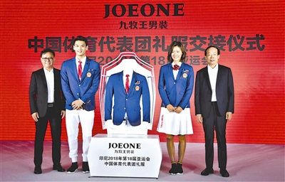 本报北京7月25日电 (记者袁浩)今天下午,2018年雅加达亚运会中国体育代表团礼服交接仪式在京举行。这款名为“蓝色梦想”的新礼服没有沿用红黄主题色,而是采用了蓝白色搭配,显得时尚、简约。中国游泳运动员刘湘笑言:“我训练晒那么黑,穿上都很显白,我相信女孩子一定会很喜欢这套礼服。”