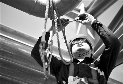 高温之下,西安特种设备检验检测院的检验人员坚守一线,为企业生产和汽油、柴油的运输安全保驾护航。 新华社记者 邵瑞 摄