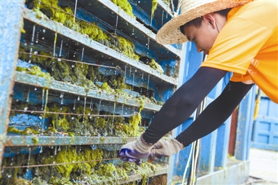 7月20日,袁源在实验室清洗刚刚采集回来的新鲜浒苔。