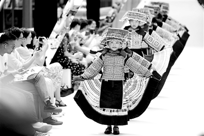 8月1日,北京,苗族绣娘盛装为“深山集市”献上百褶裙开集舞。 当日,由依文·中国手工坊发起的深山集市,在北京侨福芳草地正式开集,这场独具特色的中国传统手工艺文化体验式展卖,让人在畅玩的过程中,亲手体验中国传统手工艺的神奇魅力。
