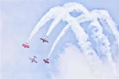 8月3日,新西兰银爵特技飞行表演队正在进行飞行表演。