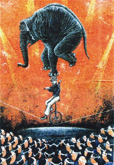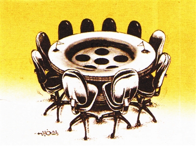 形形色色的会议每天都在进行,其内容、形式、质量自有不同与差异,且不乏“垃圾”。这幅作品高明之处在于将会议桌做了大胆比拟。【叙利亚】卡哈利
