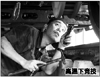 8月1日,福州车辆段培训基地,参赛选手在冒着高温比赛。