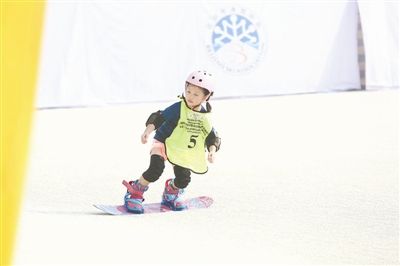 青少年组选手在北京奥森四季滑雪场上比赛。本报记者 袁浩 摄