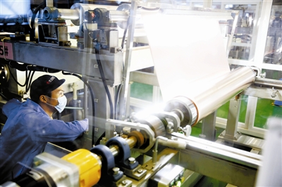 8月8日,在铜陵市华创新材料有限公司生产车间,一名员工在监测锂电铜箔生产过程。薄如蝉翼的锂电铜箔厚度只有6微米,相当于一张纸厚度的十分之一。锂电铜箔主要用于新能源汽车动力电池等产品。